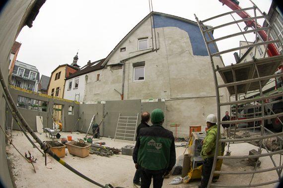 In der Kulmbacher Altstadt galt es, einen Altbau zu sanieren. Nach Kalkulation aller Kostenpunkte stellte sich heraus, dass der Abriss und die Rekonstruktion günstiger als die Sanierung werden würde. Bei der Umsetzung dieses Planes beachteten wir die optische Gesamtwirkung des Straßenzuges und den Ensamble-Schutz. Zusätzlich entwarfen wir einen Farbleitplan für den Anstrich des neu gebauten Hauses sowie der umstehenden Gebäude.
